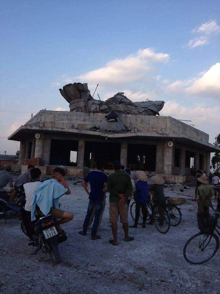 Sự việc diễn ra vào khoảng 5h chiều nay, ngày 07/07/2015. Tượng Phật sụp đổ gây một tiếng nổ lớn chấn động cả vùng quê.